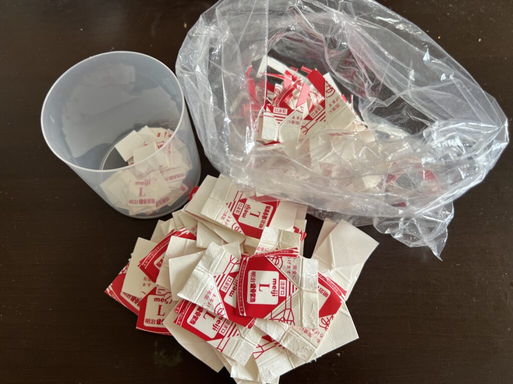 切れ端のゴミを袋に入れて、キレイに切ったLマークを